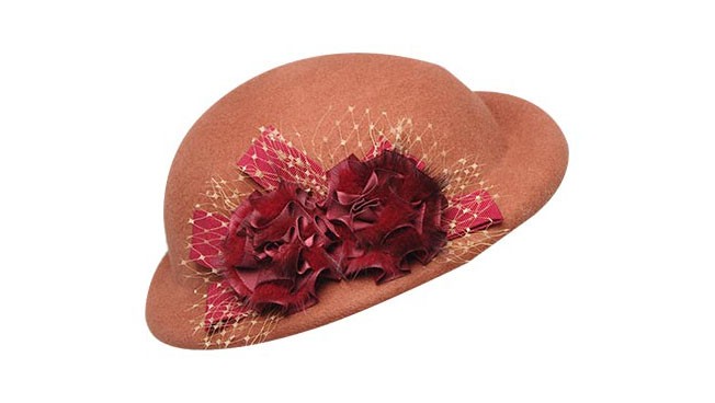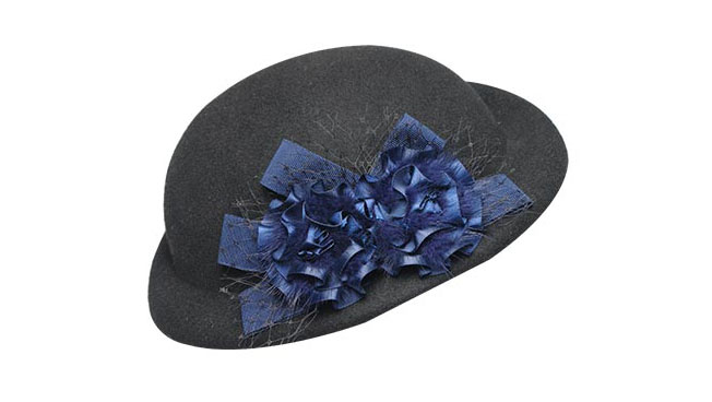 100%純羊毛的帽子, 凹凸有致的時尚造型,織帶花團錦簇的裝飾,將帽子襯托得十分優(yōu)雅