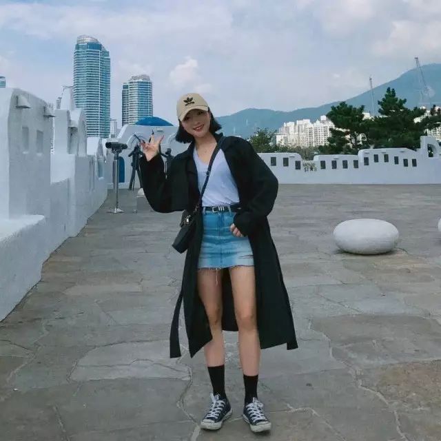 下搭牛仔短裙或者運(yùn)動風(fēng)的短裙,是比較青春減齡的,也很適合學(xué)生黨