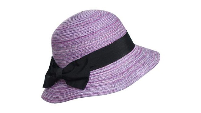 優(yōu)質的天然草帽,用深淺不一的紫色一圈圈的編織,黑色的蝴蝶結頗具時尚和活力。